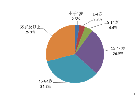 2019年藥品不良反應(yīng)/事件報(bào)告中,男女患者比為0.86:1,女性略多于男性。14歲以下兒童患者占10.2%;65歲及以上老年患者占29.1%(圖5)。
